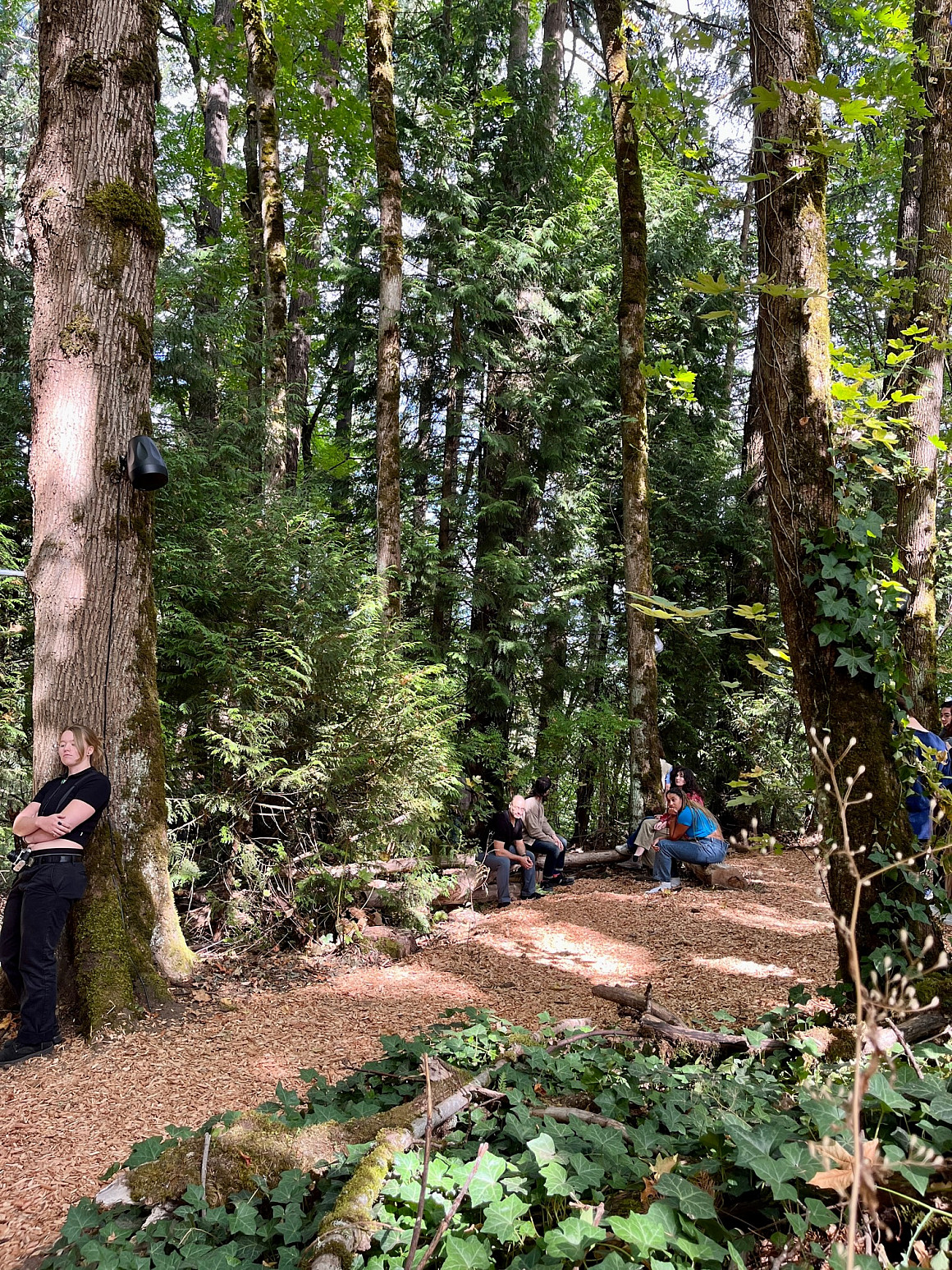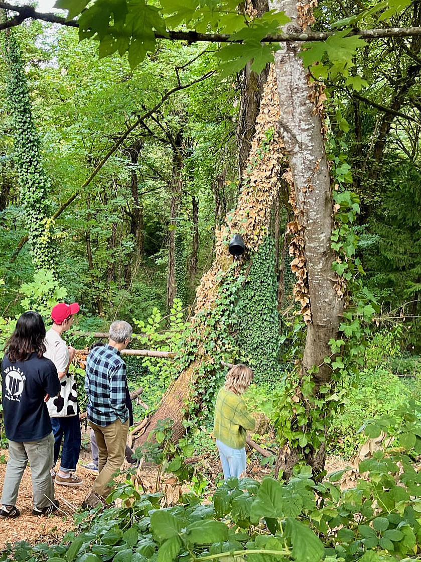 The EAR (Experimental Art Research) Forest is located behind Lewis & Clark’s Fields Art Building and the Historic Bathhouse of the Estate Gardens. Nestled in the woods you will find 16 speakers mounted to trees along a path. The project has been funded by an anonymous foundation grant.