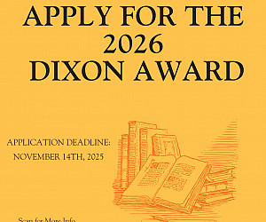The Lewis & Clark College English Department is pleased to announce this year’s application process for the Dixon Award. Through the efforts of two of our alumni, Hillary and Adam Dixon, this $2,500.00 award was established in 2002 by the Dixon Family Foundation. It is given to one junior English major each year. The 2026 application is available beginning October 21st, and the deadline to apply is November 14th, 2025.