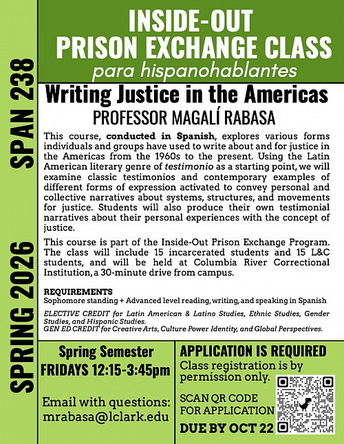 The class will include 15 incarcerated students and 15 L&C students, and will be held at Columbia River Correctional Institution, a 30-minute drive from campus.