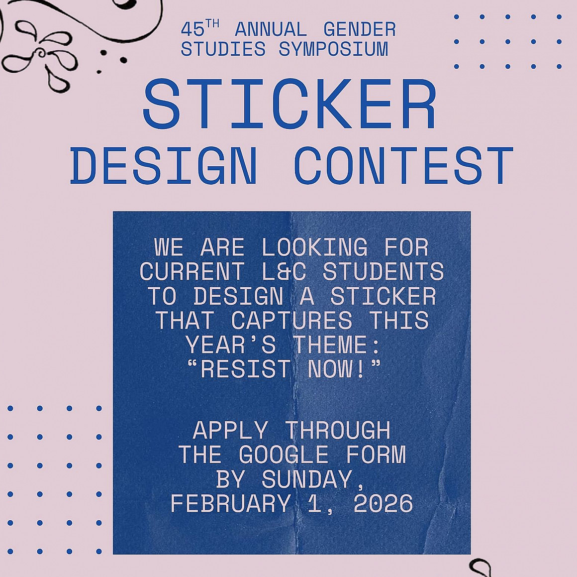 Well, you’re in luck! We are looking for current L&C students (CAS, GSEC, and Law) to design a sticker that captures this year’s theme of RESIST NOW! The winning design will also be shared on our social media and other print/digital publicity for the symposium.